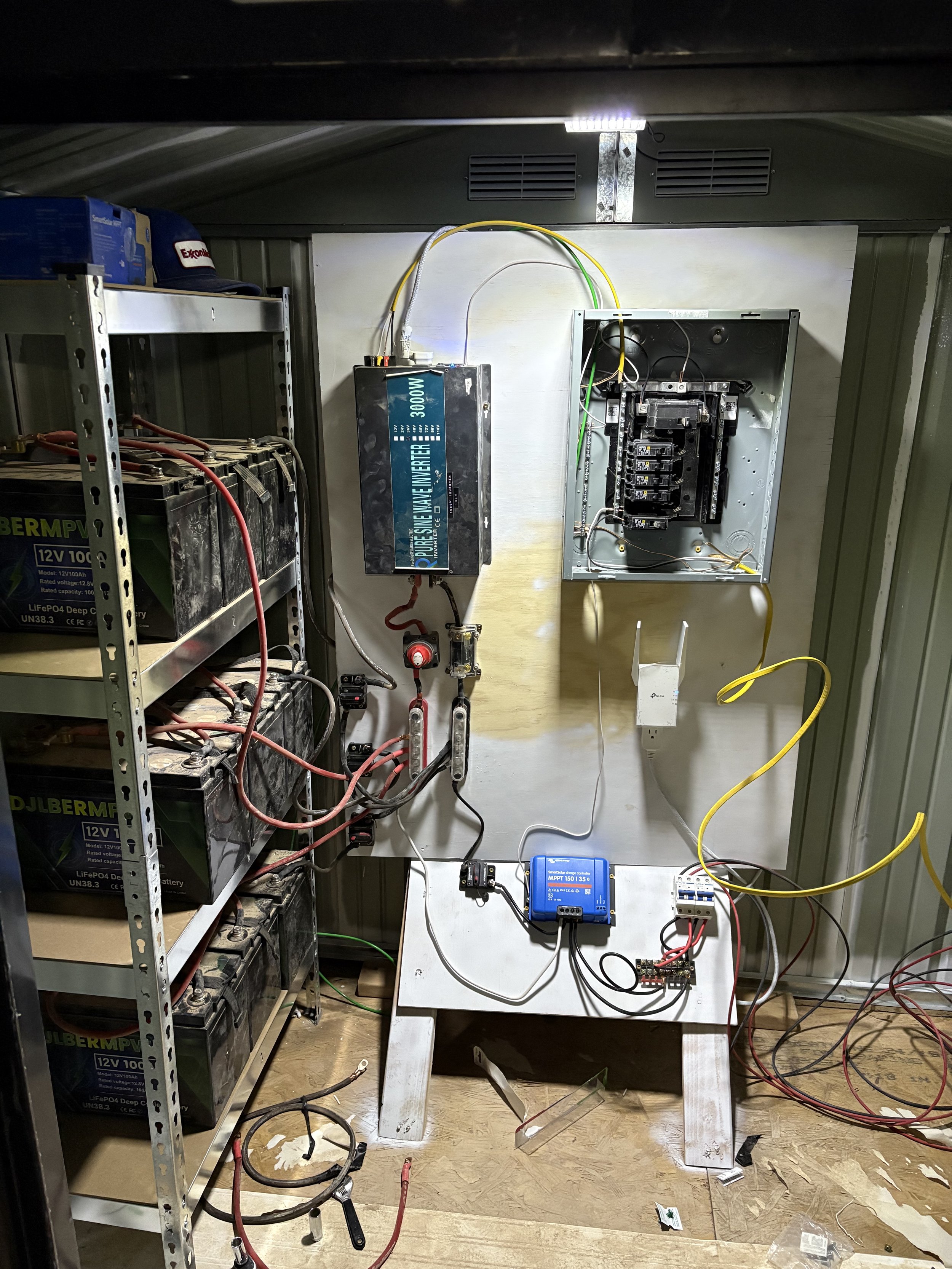 9X 12V 100AH LIFEP04 BATTERIES WIRED IN 3 ARRAYS OF 3 BATTERIES, MAKING 36V 100AH EACH ARRAY. FOR A TOTAL OF 36V 300AH.